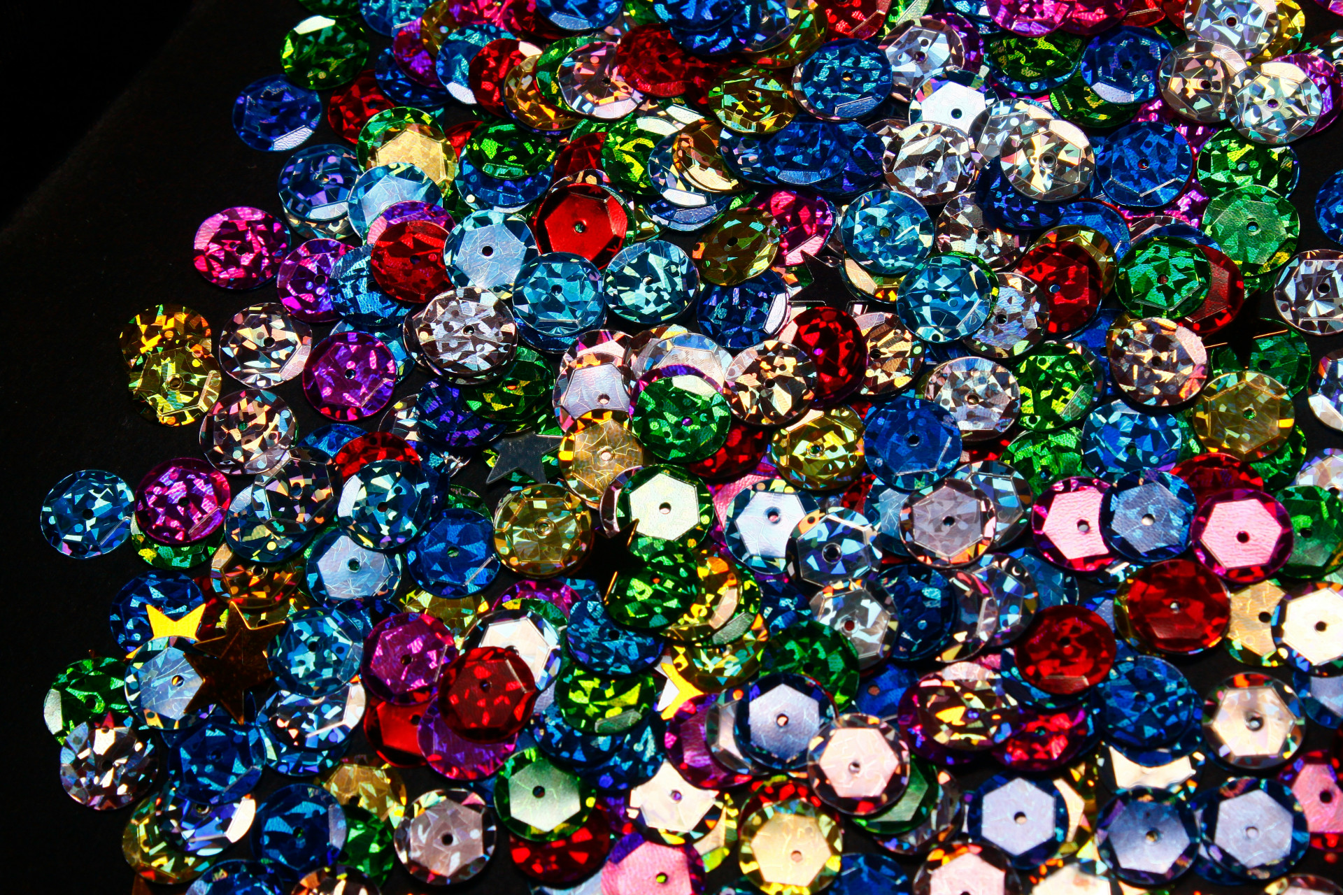 - Stor mengde paljetter i forskjellige farger